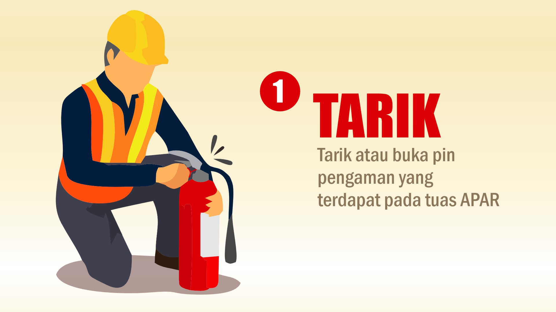 Prosedur yang pertama yaitu tarik atau buka pin pengaman yang terdapat pada tuas APAR. Pastikan saat menarik pin tidak bersamaan dengan menekan tuas APAR. Hal tersebut dapat membuat APAR menyemprot secara tidak terkendali.
